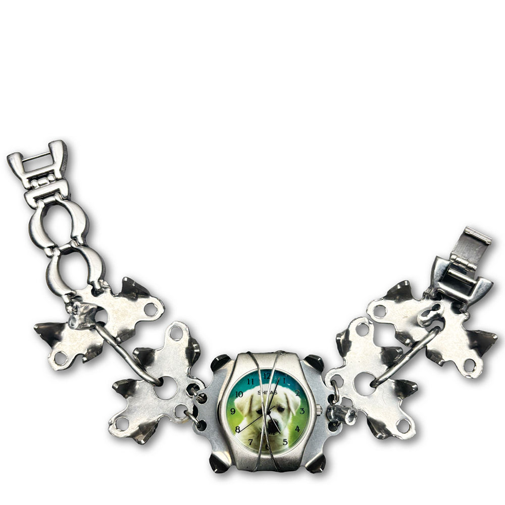 Assembled from a reclaimed dog-themed watch, theDog Watch is modified with added metal spikes and reworked components.