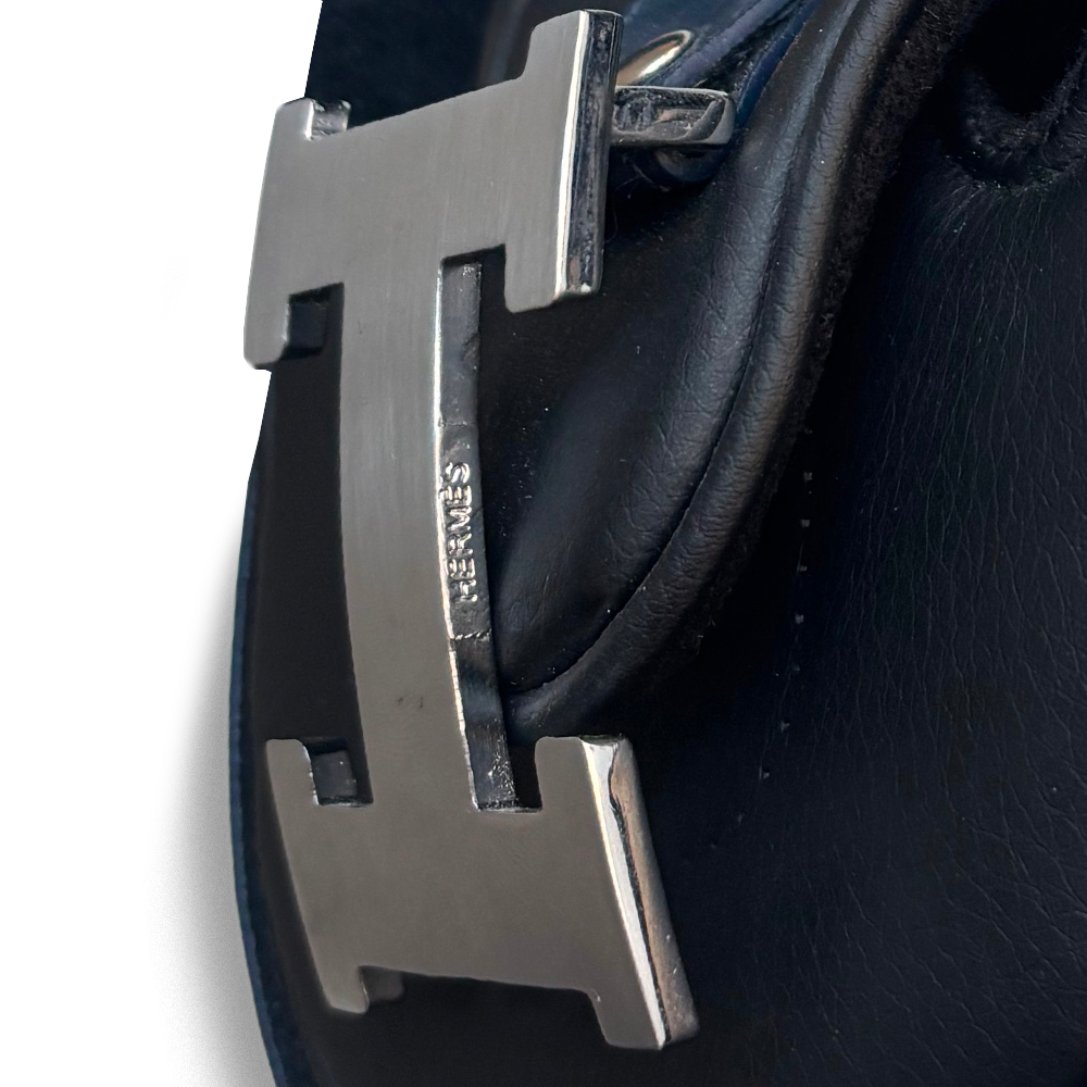 Handcrafted from upcycled leather belts, the Hermes-Buckle Mini Bag features an authentic Hermès buckle repurposed as the central fastening element. Each piece is individually hand-assembled, giving new purpose to luxury materials as a functional, compact piece with a strong identity and refined construction.